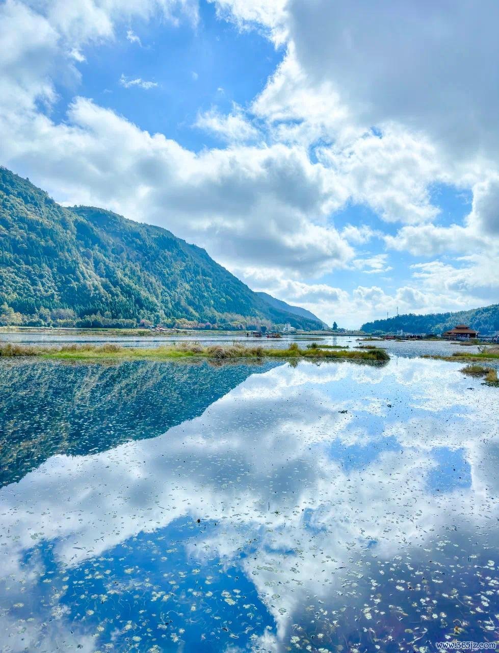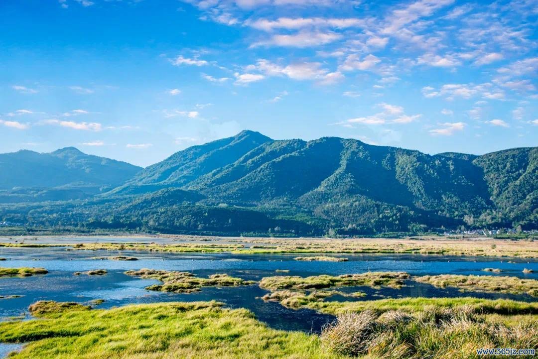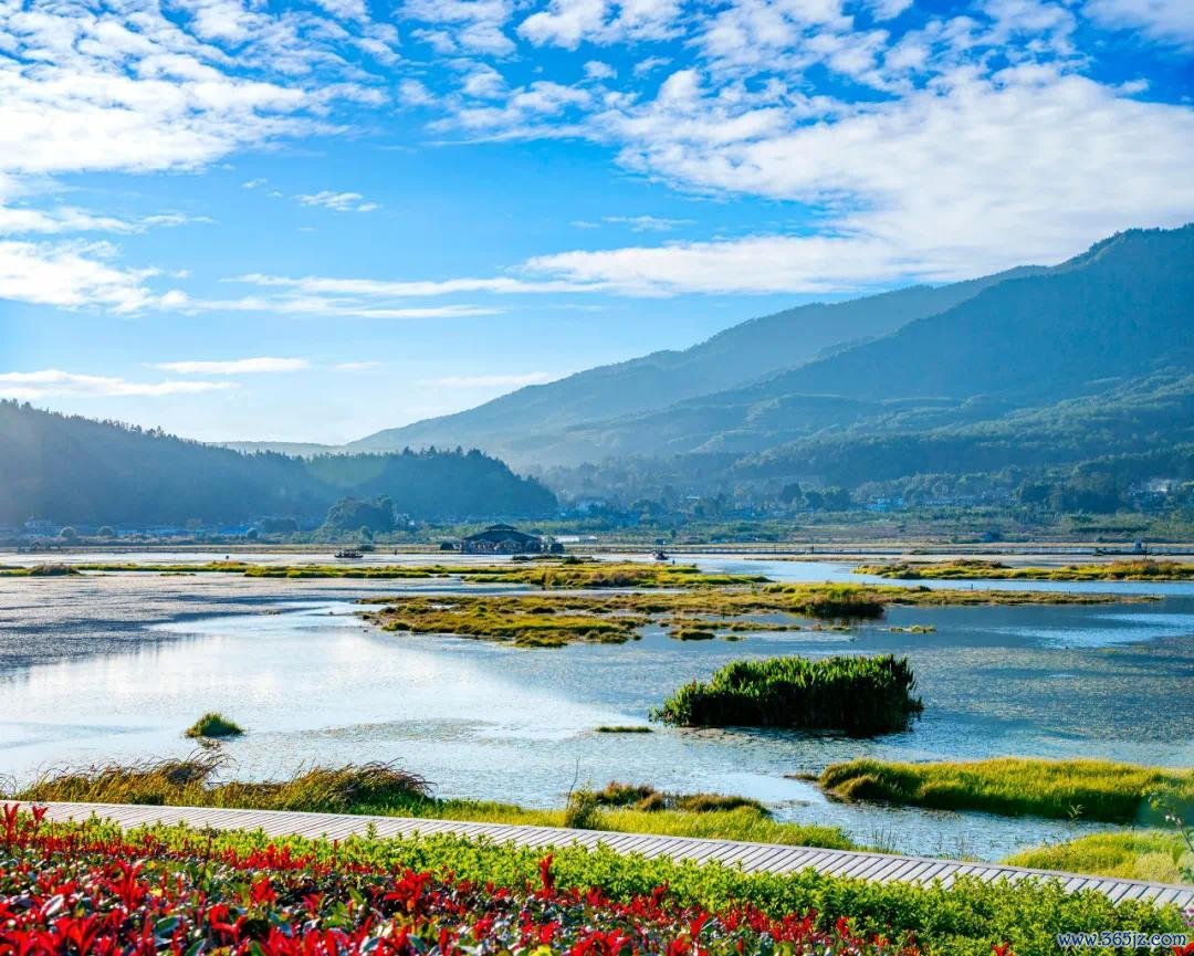 迢遥,群山环抱,潸潸缭绕,为这片湿地增添了几分玄妙与幽邃。