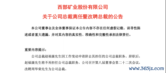 8月26日,西部矿业股份有限公司(601168.SH)发布公告,告示公司惩办层紧要调度:原总裁赵福康因责任变动辞任,由公司董事会任命副总裁周华荣接任总裁一职;赵福康将接续担任公司董事及控股子公司西部矿业集团财务有限公司董事长。