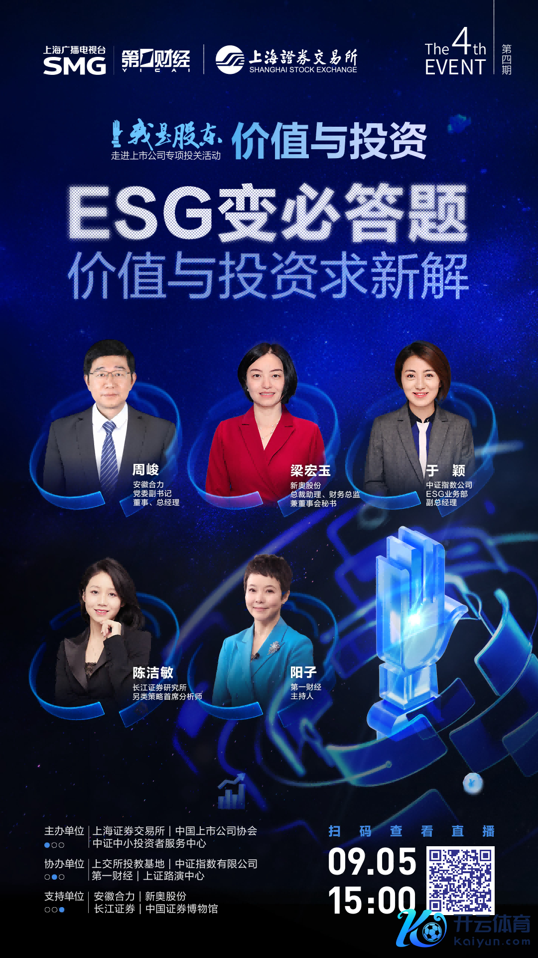 为更好管事于中国老本商场深远改革,强化投融两头同频共振,上海证券交游所连结第一财经发起《价值与投资》,践行感性投资、价值投资、始终投资理念九游体育app娱乐,强化央国企、科创板企业等上市公司的示范效应,深远买方机构与指数公司的专科赋能,为上市公司搭建精确传递投资价值的专科平台,更为投资者提供听得懂、靠得住的投资逻辑。 现时各人经济发展正向着绿色低碳加快转型,ESG(环境、社会、措置)手脚鼓舞可抓续发展的中枢引擎,已深深镶嵌各人金融体系之中。在国内,ESG计策密集推出,沪深北三大交游所先后发布《