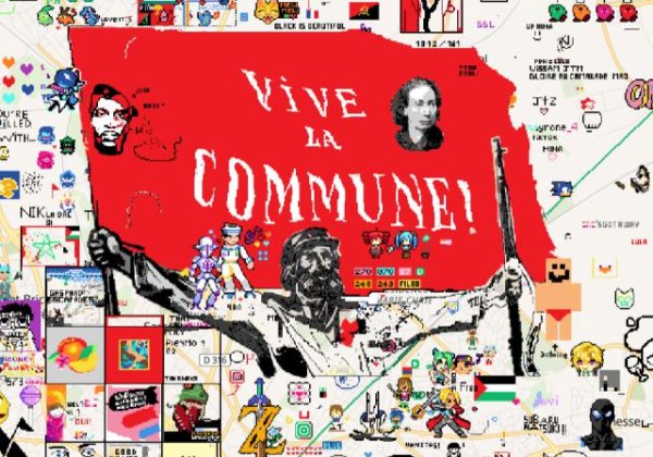 比如,我们拉进立异老区巴黎,能看到" VIVE LA COMMUNE "。