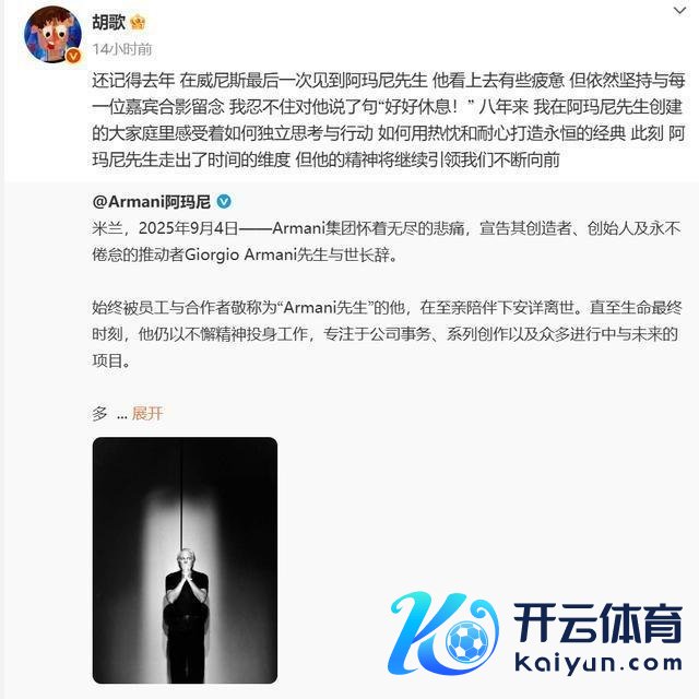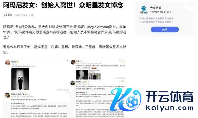 昨儿个阿玛尼的独创东谈主传出音问后,文娱圈那帮“顶流”,一窝风似的王人在发文